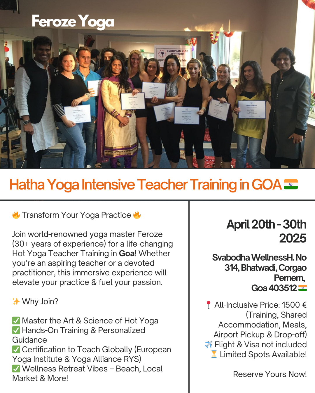 Join Feroze - one of the most inspirational yoga masters with 30+ years of experience - for an intensive, life-changing Hot Yoga Teacher Training in Goa, India!